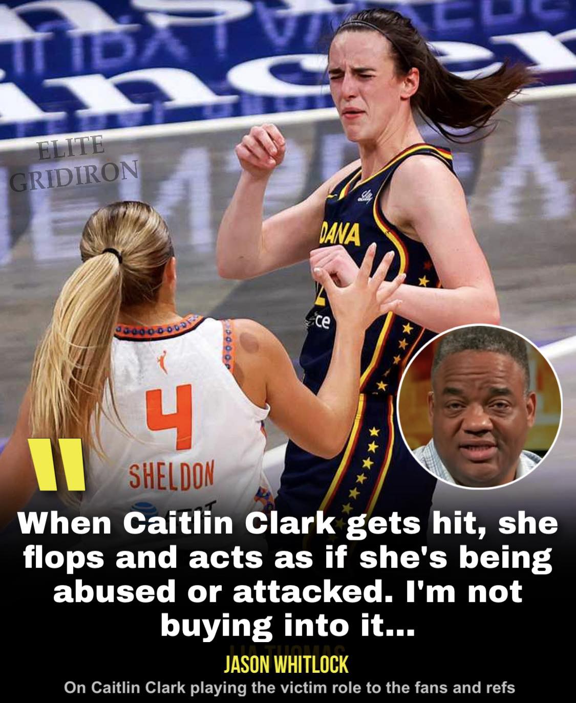 Caitlin Clark was labeled a “drama queen” by Jason Whitlock after her skirmish during Tuesday’s game between the Indiana Fever and Connecticut Sun. Clark was involved in an incident with Jacy Sheldon and Marina Mabrey in the Fever’s 88-71 victory.