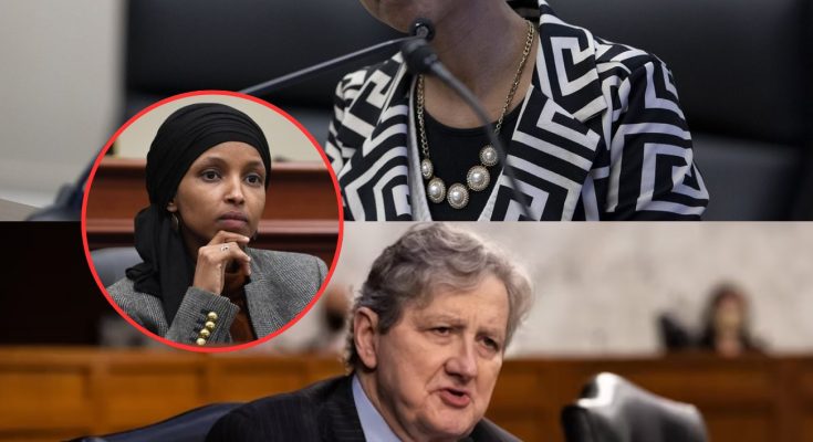 This wasn’t just another back-and-forth on the Senate floor. Kennedy, with his calm and collected demeanor, began reading from that folder, and the contents of it were nothing short of explosive. The damning evidence he revealed wasn’t just the typical political fodder—this was a full-scale attack on Congresswoman Ilhan Omar’s credibility and political career. The entire room, once filled with casual noise and distractions, fell silent.